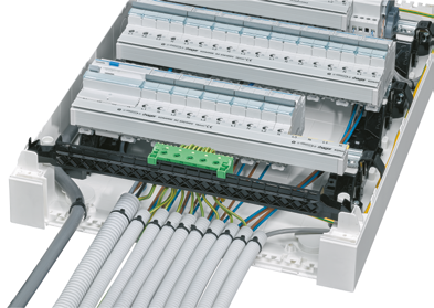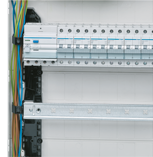 6. Ідеальна обробка. Розмітка отворів на тильній стороні. Прямокутна і кругла розмітка нанесені ззаду і між DIN – рейок для наскрізного проведення трубок і кабелів. Дуже практична система для реновації. Є бокова розмітка для свердління, завдяки чому кабелі проводяться дуже просто. Дуже чітке маркування ланцюгів. Власники маркування поставляються разом з маркувальними листами, які, в свою чергу, защіпаються в пази передній панелі, знизу або зверху від модульних пристроїв. Навіть ручка розподільного пристрою дозволяє помістити ім'я схеми або візитну картку в легко доступному місці.